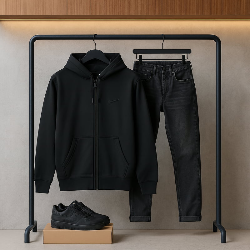 سوئیشرت زیپ دار مردانه بیسیک مشکی-مشکی