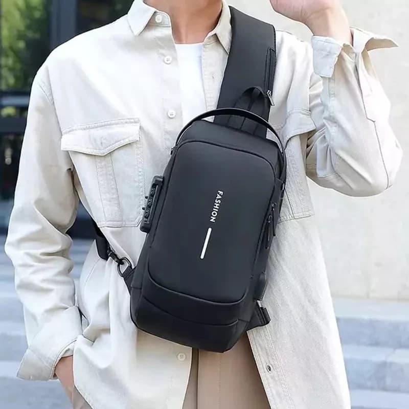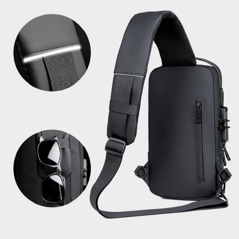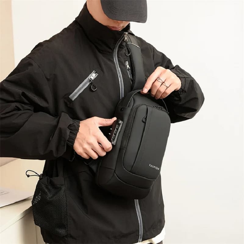 بادی بگ ضدآب بنج BANGE مدل 7090 دارای دو محفظه زیپی اصلی و جادار است. تمامی قسمت های داخلی آستر کشی شده. جنس رویه کار اسکینی ضد آب هست و قطرات آب روی این پارچه سر میخورند و به داخل نفوذ نمی کنند.